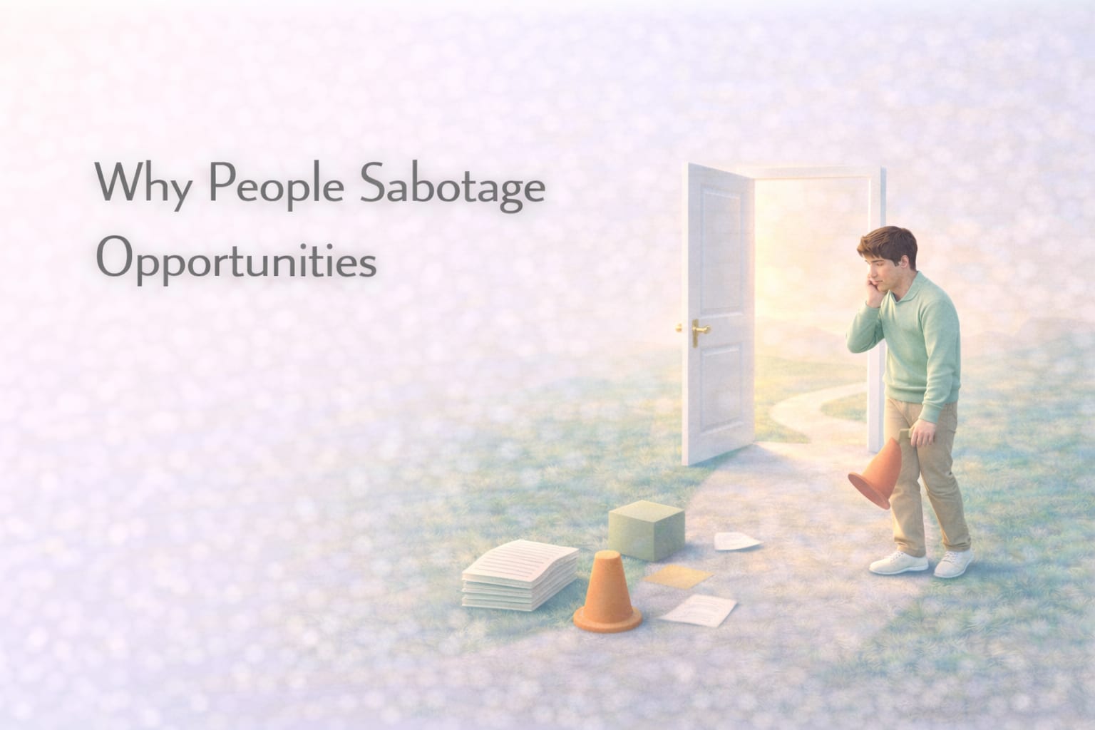 A: People often sabotage opportunities because new situations create uncertainty and psychological pressure. The brain sometimes avoids these feelings by delaying action.